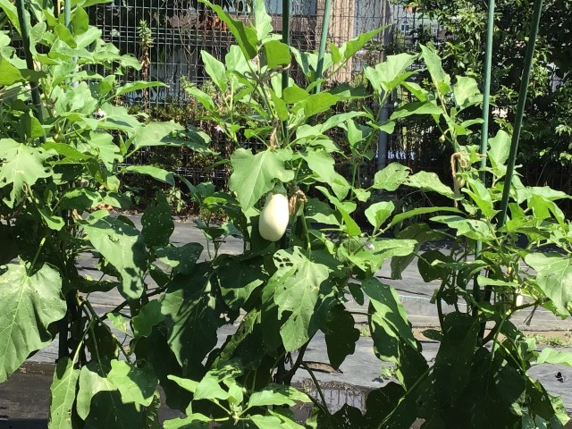 最近話題の白茄子が、大きく育っています。