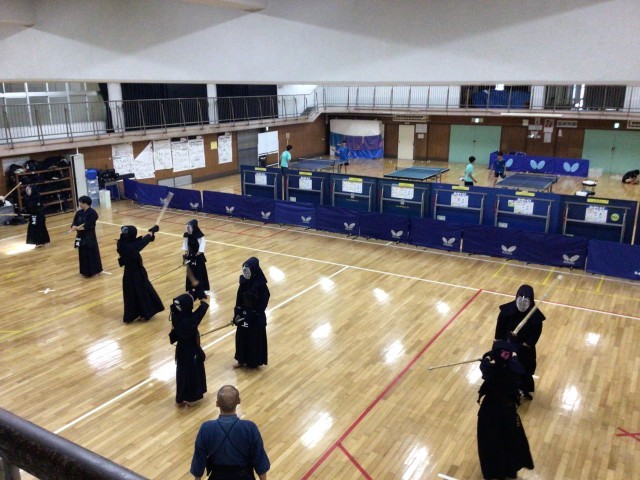 剣道部が練習に励んでいます。冷房のある格技室で安全に気をつけて活動しています。