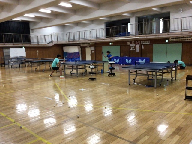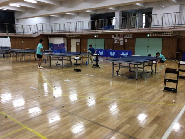 格技室では、卓球部も練習に励んでいます。集中してボールの行方を追っています。