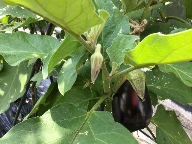 農業部の皆さんが、朝水やりをしてくれました。美味しそうな茄子が収穫間近です。