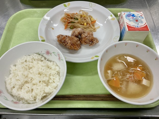 今日の給食には、大人気の「鶏肉のから揚げ」もあります。その人気に全てを奪われないように、スープの味付けにはいつも以上に気を遣いました!結果、とても美味しくできたと思います。わずかに水溶き片栗粉によってとろみを付けたスープに豚ひき肉と生姜汁がとてもよく合い、そこにトロトロにやわらかくなった「冬瓜」が自然と口にスルッと入ってくる!