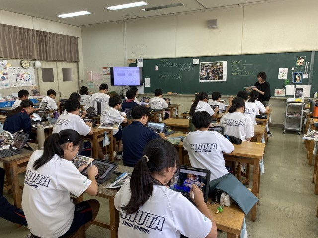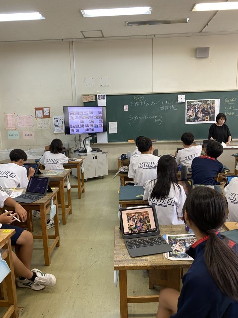 ルノワールの「ムーラン・ド・ラ・ギャレットの舞踏場」の鑑賞です。画像に各自が気づいたことを書き込み、投稿して意見交換するようです。新しいタブレットの使い心地はどうでしょうね?