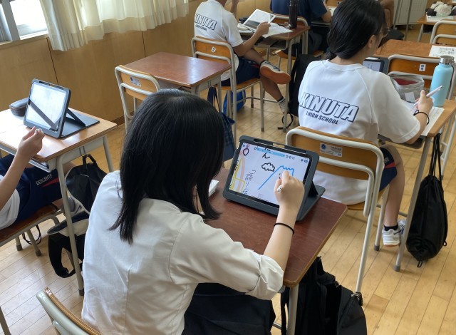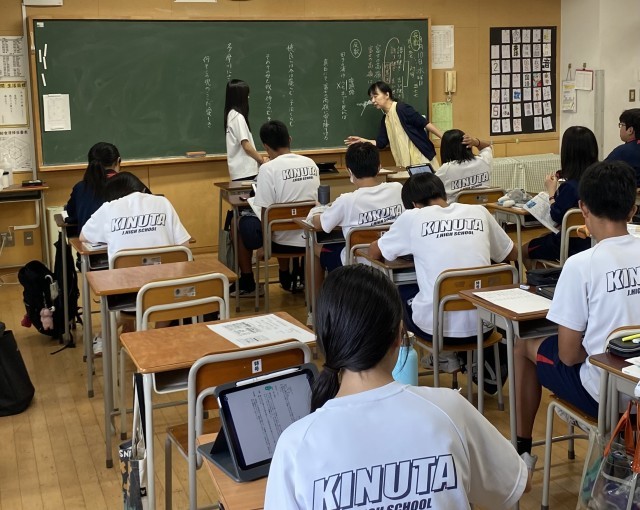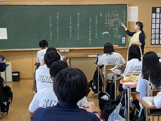 「田子の浦ゆうち出でて見れば真白にそ…」という句について、調べたことを発表しながら意見交換をしているようです。意味を細かく捉えてあらためて読むと、新たな景色が見えてくるなぁと思いました。