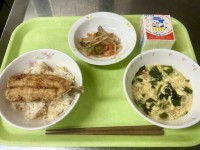 オニオンドレッシングサラダは、玉ねぎのうま味がドレッシングにしっかりと入っており、いつもの「しょうゆ・酢」の味がメインのサラダとは違った感じになっています。今日はパンとの組み合わせでもあります。昨今のサラダの残菜増にストップをかけてくれることを期待!野菜は水分も多く、ビタミン・ミネラルも含んでいるので、暑い季節には積極的に食べてほしい食べ物です。給食で積極的に食べましょう!