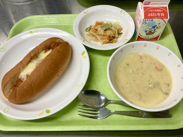 週の半ばの水曜日です!今日の給食は配りやすいパンのメニューにしました!