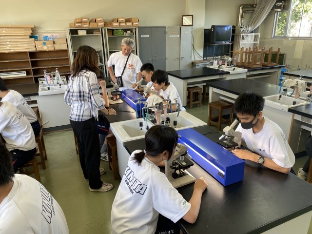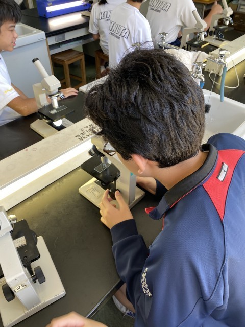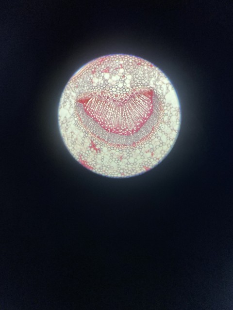 久しぶりにのぞくミクロの世界、楽しい!…と思い「この葉っぱの断面、写真に撮れるかな」と試していたら、生徒がうまく写るように調節してくれました。さすがですね。