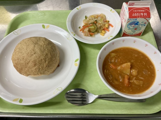 豚肉・野菜・芋の他に、ひよこ豆・レンズ豆が入っていて、美味しさだけでなく、今日の給食の栄養バランスの柱にもなっています。こちらもたくさん食べてください!