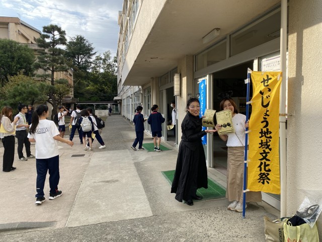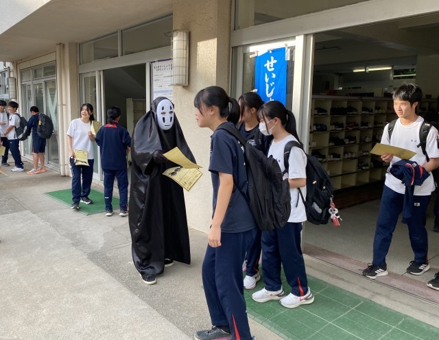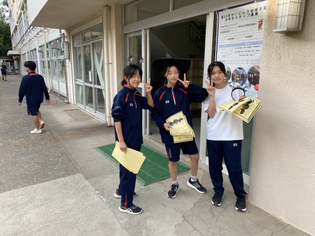 11月30日に開催される「せいじょう地域文化祭」の中学生スタッフ募集のため、仮装されたスタッフの方々が来校されました。