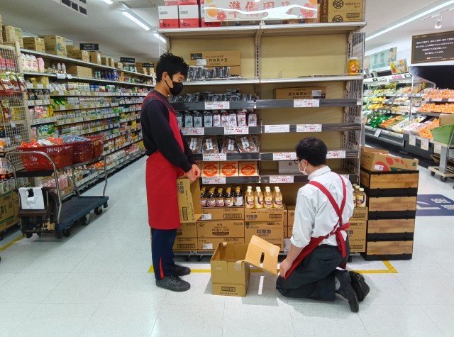 いつもはお客さんですが、今日は店員として品出しなどの作業を行っています。