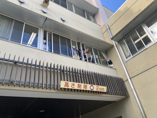 3年生が見送ってくれています。ちょっと羨ましそうかも。
