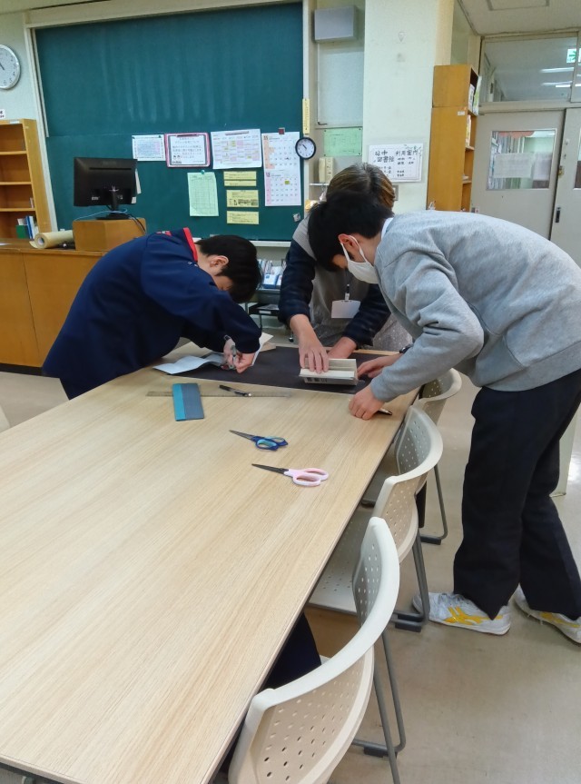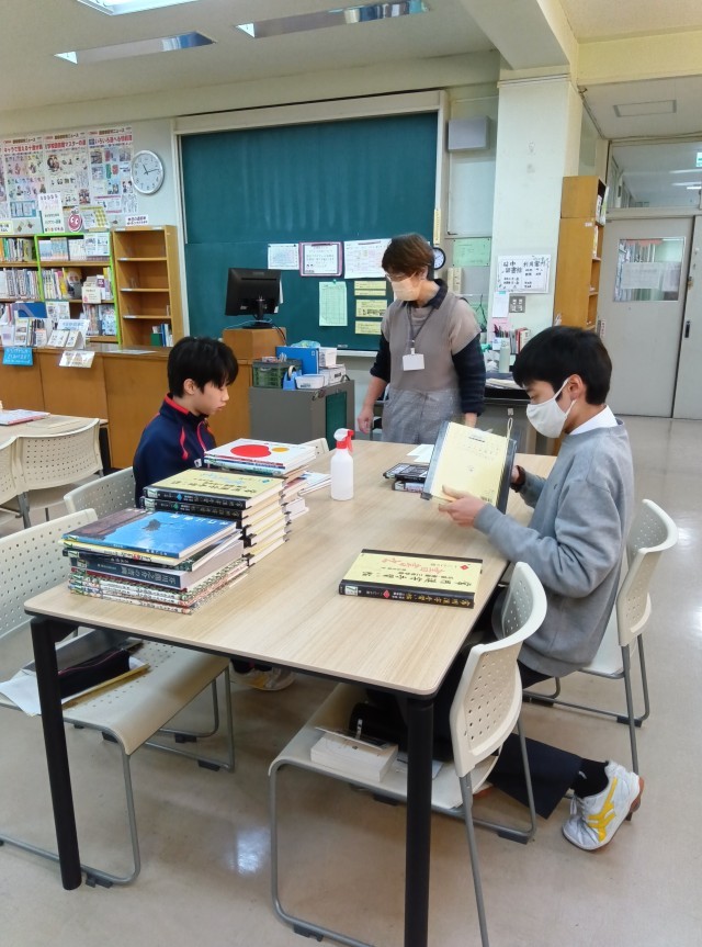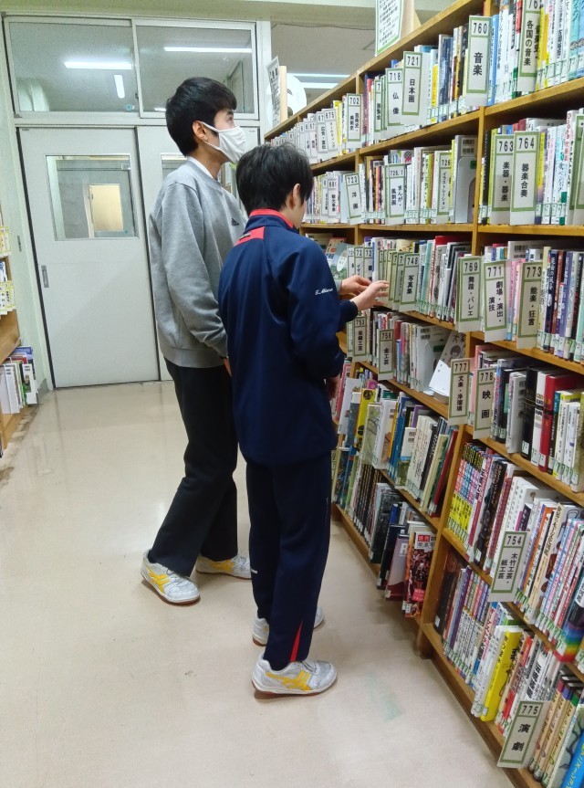 学校の図書館で職場体験です。ラベルの貼り替えを体験しました。