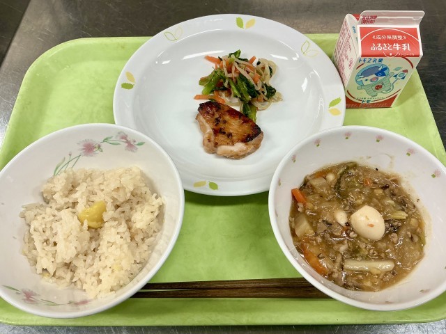 日本の秋を代表する伝統料理ですが、食材が高価になってしまい、家庭では気軽に作ることができなくなったのではと思います。その代わりに給食でこれからも作っていきますので、ぜひ食べて、季節感を感じてください!
