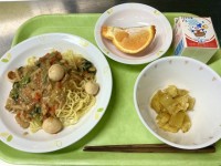 今日は肉、野菜、いか、うずら卵と具沢山の「五目あんかけそば」でした!様々な食材のうま味が重なり合って深い味を作り上げている他にも、とろりとした「あんかけ」が麺とからんで、食べ心地も良かったです。もちろん、栄養もたっぷりですので、今日は麺にあんかけをたっぷりかけて、思いっきり食べてください!心も体も元気になりますよ!