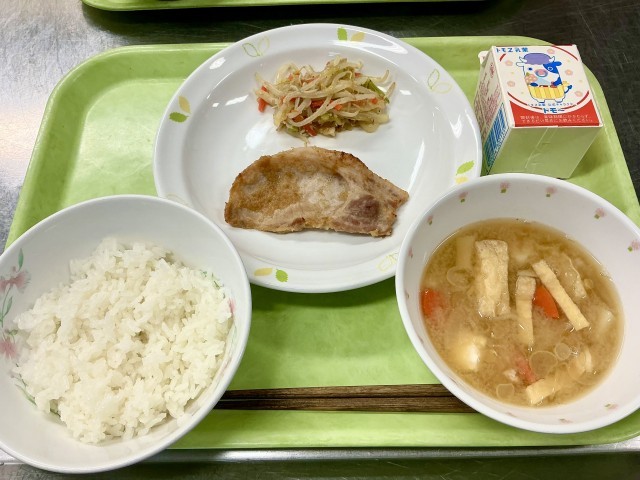今日は見た目からメインとしてふさわしい、存在感バツグンの「豚肉の生姜焼き」です!昨日は、3年生は私立推薦入試がありました。入試後で疲れてしまい、学校に行く気持ちが重たくなるかもしれない。少しでも気持ちを盛り上げたいと思い、この料理を選びました!
