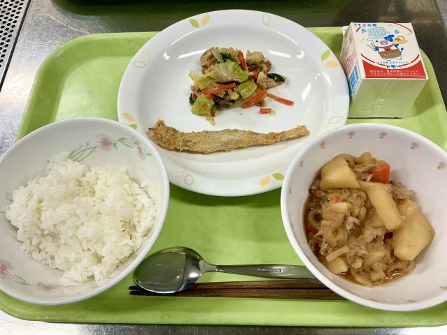 今週は、相次ぐ学級閉鎖に苦しめられる週となりました。昨日の昼過ぎにも1学級閉鎖しました。今日のししゃも、昨日のちくわ、おとといの鮭、そしてそれ以外の料理たち。注文変更が間に合わなかった料理たちのフードロスで胸が苦しかったですが、生徒たちもがんばって食べてくれたおかげで、残菜率が20%を超える料理が出なかったのはとても良かったと思います。