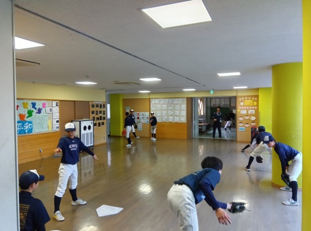 春休みが始まり、生徒の皆さんがいないさみしい砧中かと思いきや、野球部と陸上部が雨で校庭が使えないため室内練習、体育館格技室ではバトミントン部、卓球部、剣道部が元気に活動していました。