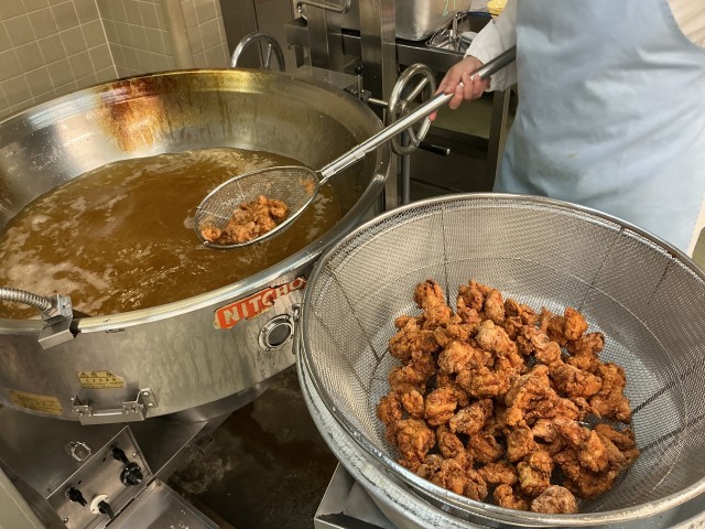 学級に配食するギリギリまで揚げていたので、1番おいしいタイミングで提供できました。