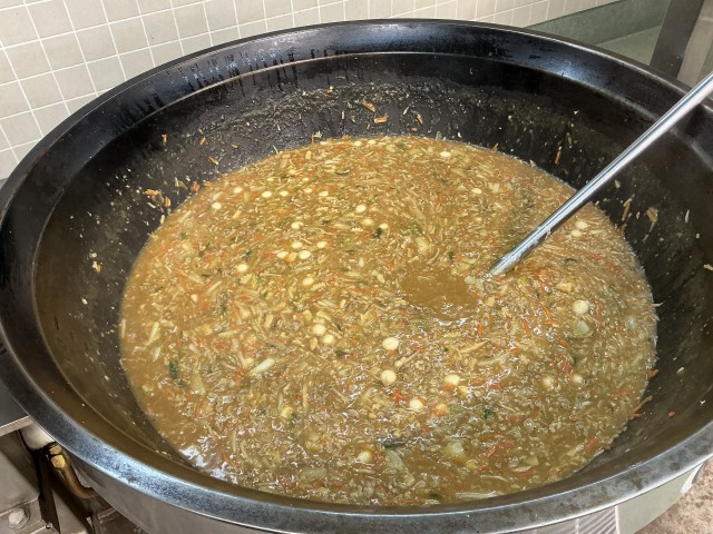 今日の給食は、中華丼です。豚肉・いか・うずらの卵といったたんぱく質源と人参、玉ねぎ、たけのこ、白菜といった野菜を入れた具沢山な中華丼に仕上がりました。たんぱく質は筋肉や骨、血といった丈夫な体に必要不可欠な栄養素です。特に成長が著しい思春期では、特に摂取したい栄養素でもあります。とはいえ、たんぱく質だけではなく体の代謝を助けるビタミンやミネラルを多く含む野菜などと一緒に食べることも大切です!