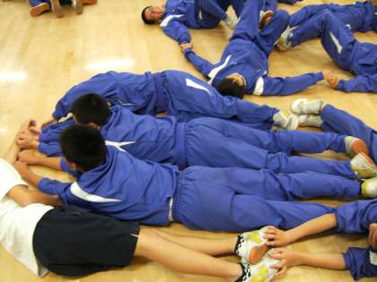 第1学年は「身体を使いながらコミュニケーションについて考える」をテーマに、世田谷区パブリックシアターの方々のご指導の下、ワークショップを行いました。