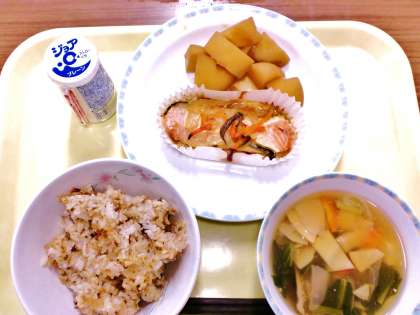12月12日 おかかごはん 吉野汁 鮭のみそマヨネーズ焼 じゃがいものバター醤油煮 発酵乳