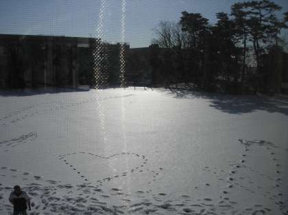 太陽で雪が解け始めました。校庭はしばらくそっとしておきましょう。