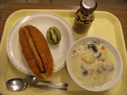 1月17日 ウインナーサンド コーヒー乳飲料 さつまいもと小松菜のシチュー キウイ