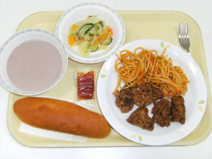 1月30日 コッペパン ココア くじらのたつた揚げ スパゲッティソテー フレンチサラダ
