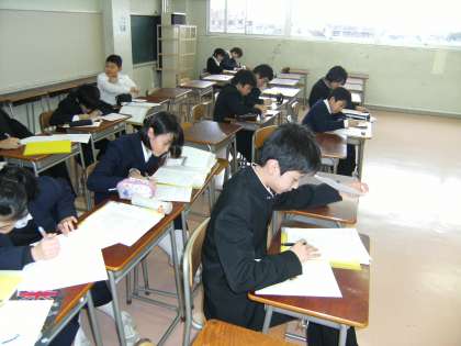 例文を読んで書き方を学び、下書きをしてから先生のチェックやアドバイスを受け・・・とても真剣に取り組んでいました。