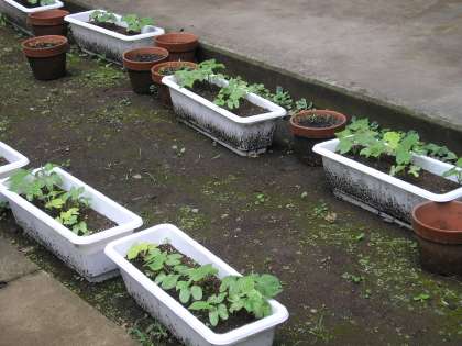 植木鉢のマリーゴールドも少しずつ葉を茂らせています。