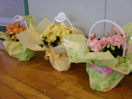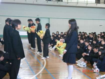 今日は、対面式がありました。3年生から1年生に歓迎の気持ちを込めてベコニアの鉢植えを手渡しました。