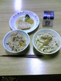 夕方に自分たちで作ったうどんが食卓にのりました。おいしくできたかな?