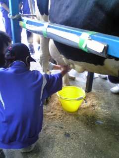 乳搾りやブラシかけ、餌を与える体験をした後はバター作りに挑戦します。
