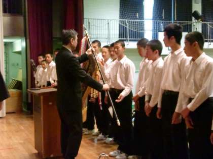 今朝は全校朝礼があり、春季大会でよい成績を残した運動部の表彰をしました。