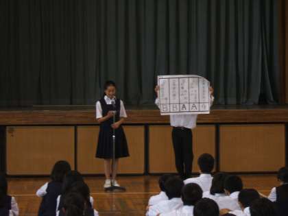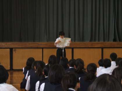 始めに、各クラスの学級委員からクラスの通知表が発表されました。