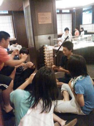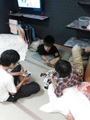1日班行動から無事に全員が宿舎に戻りました。入浴したり、帰る準備をしたりなどしています。ロビーてばトランプなどして、晩御飯の時間を待っています。