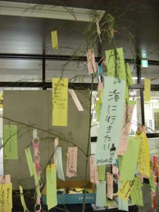 職員玄関に毎年恒例で、笹が飾ってあり、生徒が願いを込めた短冊をかけました。