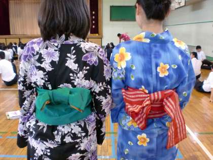 生徒達は浴衣に関する歴史や、着方、帯の結び方の種類などの話を興味深く聴いていました。