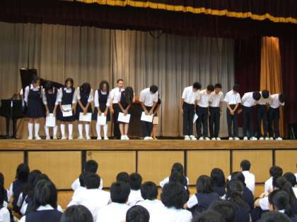 始業式の後、夏休み中に行われた大会の表彰を行いました。