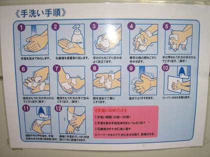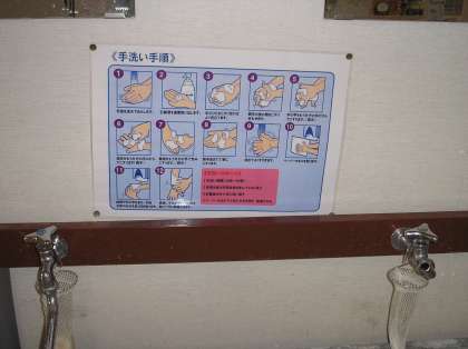 各水道付近には、効果的な手洗いについてのポスターを貼り、