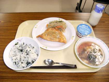 11月8日 わかめとじゃこのごはん 牛乳 豆腐とチンゲンサイのスープ ジャンボギョウザ 春雨サラダ アイスクリーム