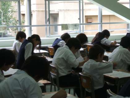 9月28日(月)1年生にとって初めての中間テスト(今日は社会、英語、数学の3教科)が行われました。