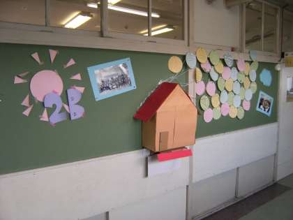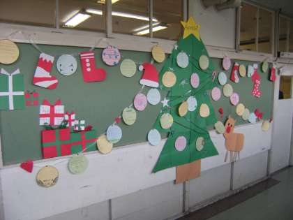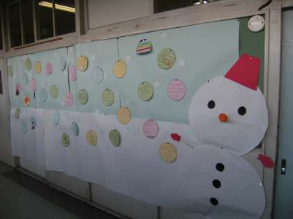 2年生の英語では、「将来の夢」を授業中に英語で発表し、さらにその英文を廊下に掲示しました。生徒達の英語力の上達もさることながら、廊下に飾ったデコレーションにも圧巻です。各クラスが工夫を凝らして作品を仕上げました。思わず立ち止まって見たくなります。この作品は年内は張り出していますので、是非一度ご覧ください。