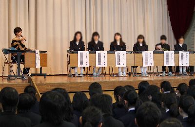 また、生徒を交えたパネルディスカッションでは、犬や猫だけではなく、多くの動物が殺められていること、そして、ペットブームで多くの動物を飼育する半面、動物を「もの」のように捨て、生態系を壊してしまっていることなど、私たちの身近なところで「命」を軽々しく扱ってしまっていることを考えさせられる時間になりました。