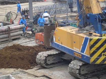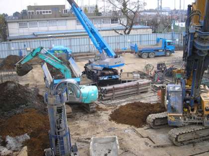 地中に穴を開け、巨大な柱を設置する作業が始まりました。