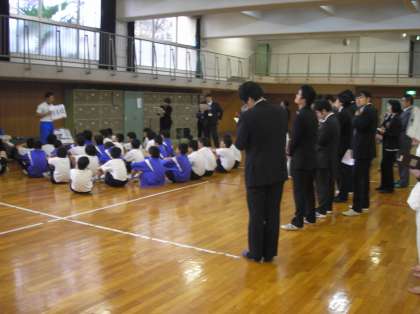 2年CD組男子が柔道着の着方、礼法や受け身などを学びました。