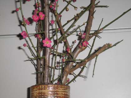 主事さんが活けてくれた梅の枝に花が咲いています。