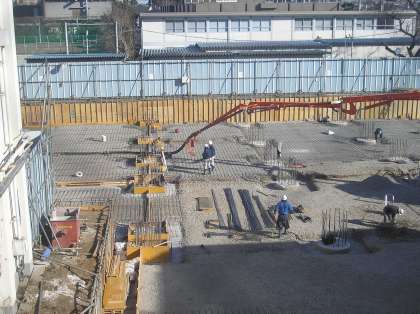建物の床部分にコンクリートを流す準備をしたいます。