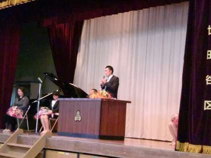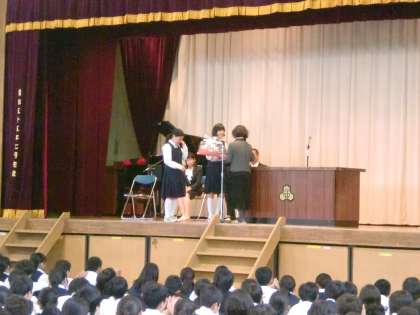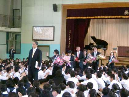 退職・異動された先生に、感謝の言葉と花束を贈りました。