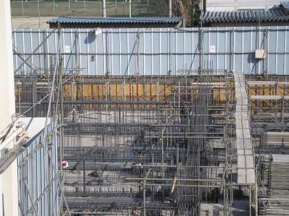 流し込まれ、柱用の鉄筋も組み上がってきました。