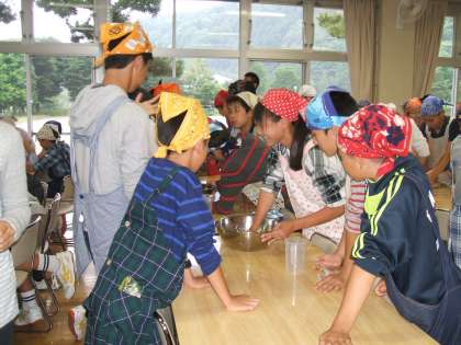 1日目はオリエンテーリングとうどんづくり、2日目は酪農体験とレク大会、
